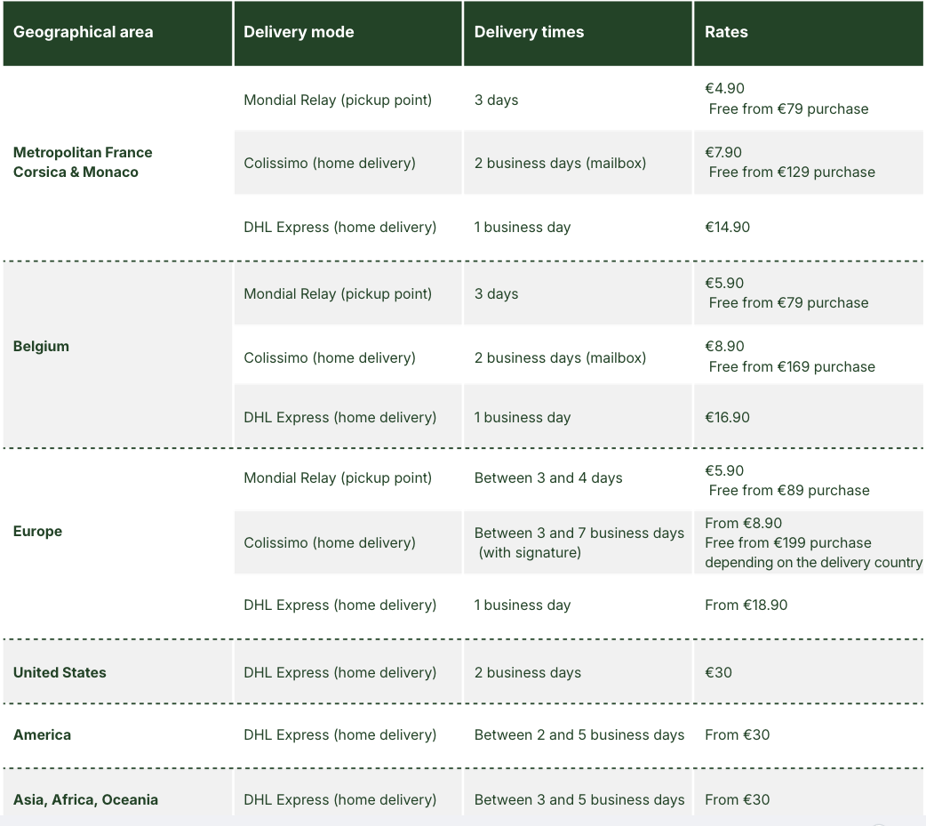 We also offer a free Click & Collect service from our location in Tourcoing (France).